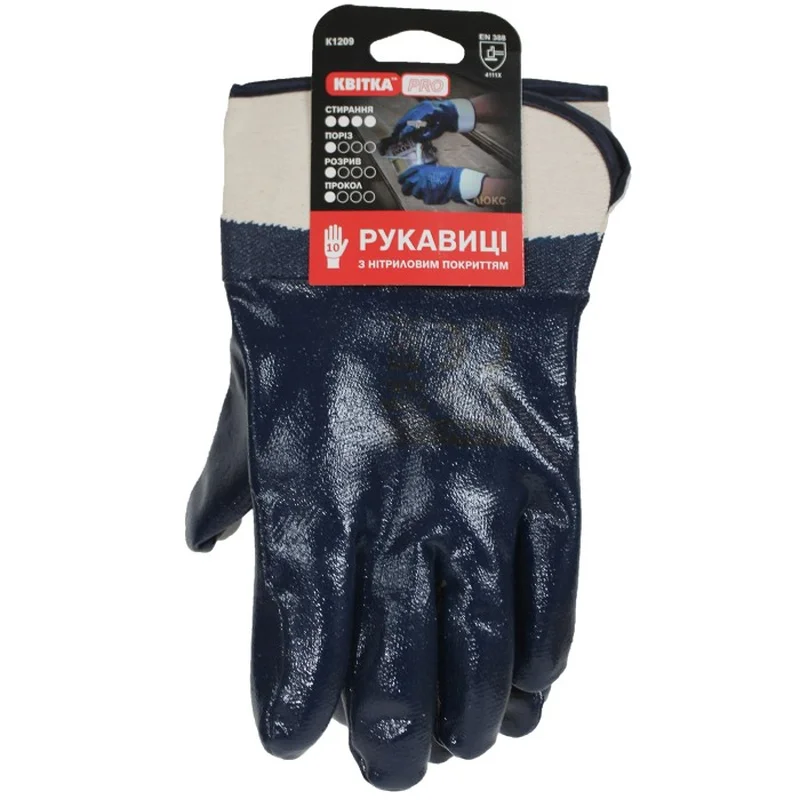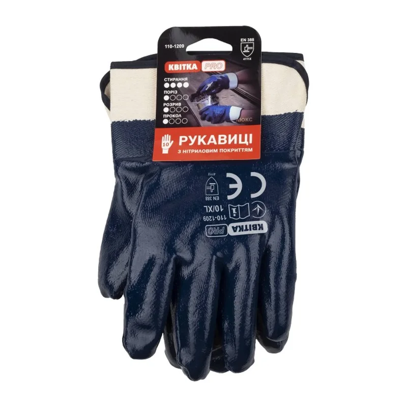 Рукавиці нітрилові з манжетою (крага) КВІТКА PRO (110-1209-10-IND)