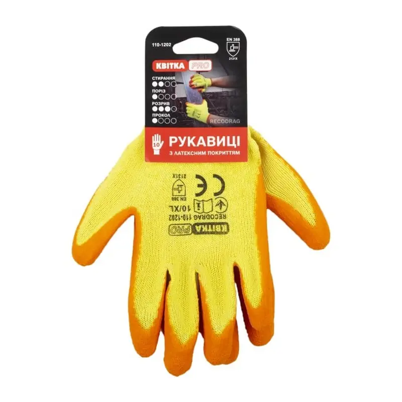 Рукавиці трикотажні з латексним покриттям КВІТКА Recodrag (12 пар, L) (110-1202-09)