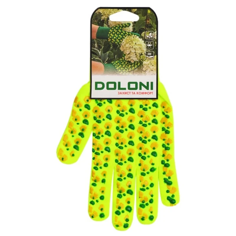 Рукавиці з крапками зелені жовті квіти 10" Doloni (4116)