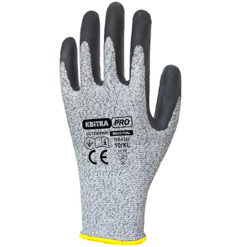 Рукавиці з латексним покриттям КВІТКА PRO CutexGrip HPPE (10", XL) (110-1223-10-IND)