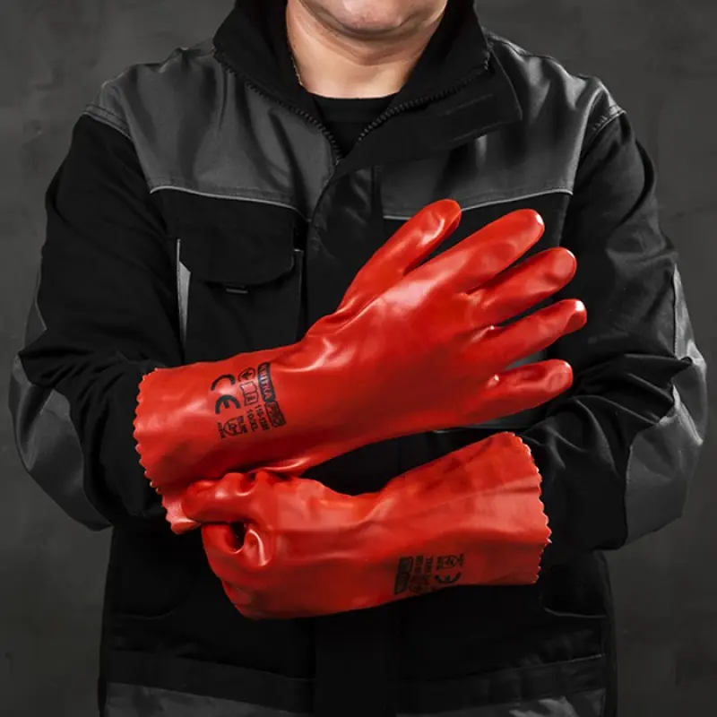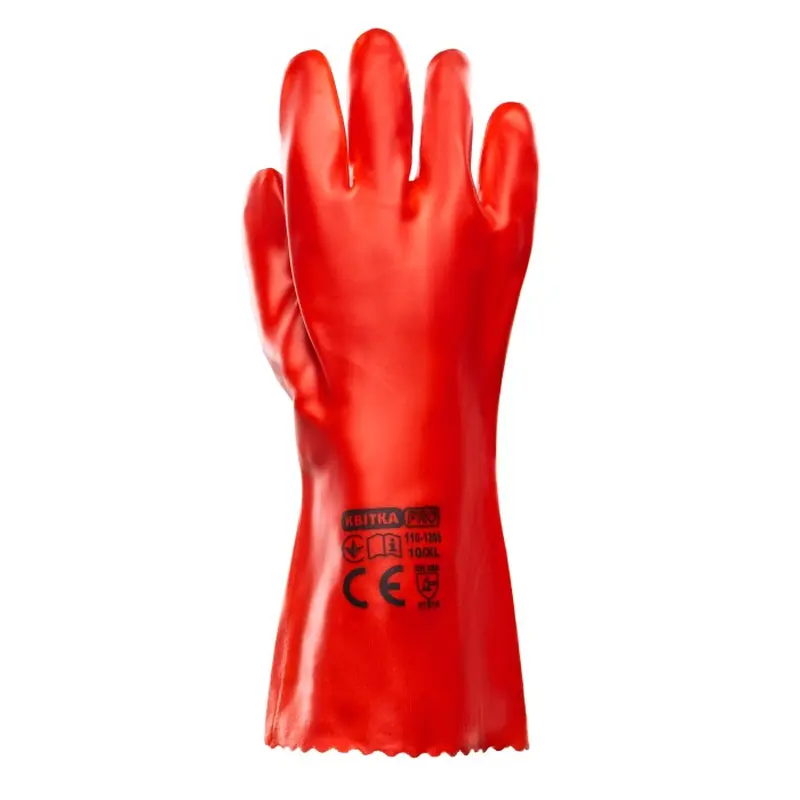 Рукавиці з ПВХ покриттям бензомаслостійкі КВІТКА PRO Industrial (12 пар, 350 мм) (110-1205-10)