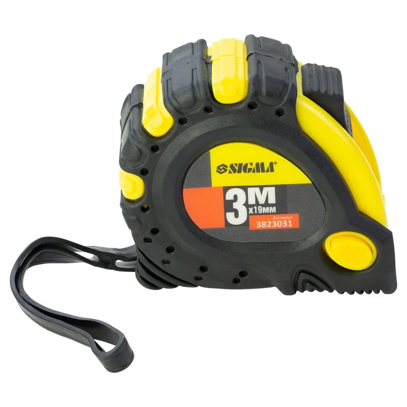 Рулетка магнітна фіксатор + гальмо 3м×19мм SIGMA (3823031) функції гальма і блокування виконуються окремими кнопками. Надійне ударопоглинання, швидке повернення стрічки і плаваючий кінцевий захват.