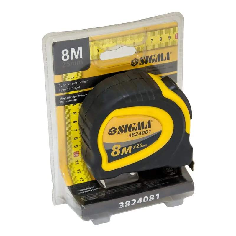 Рулетка магнітна обгумована з автостопом 8м×25мм SIGMA (3824081)