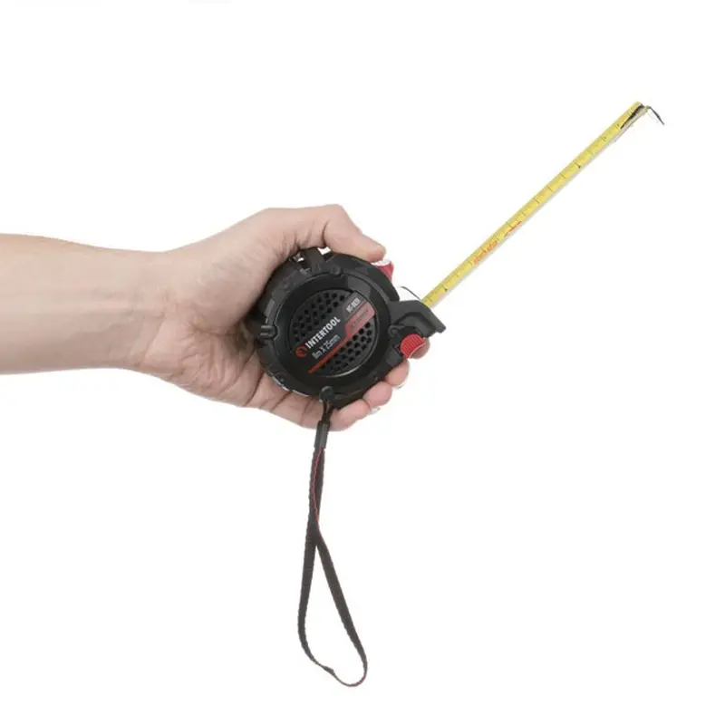 Робити виміри такий рулеткою зручно та легко, оскільки кнопки фіксації полотна знаходяться в близькому доступі для пальців, розміщені зверху та знизу на корпусі.