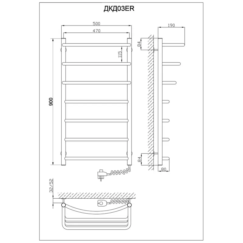 Рушникосушарка KOSSER Каскад Дуга 900х500/7 ER рег.