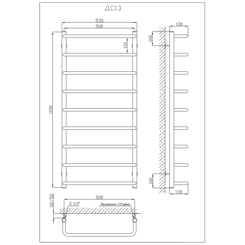 Рушникосушарка KOSSER Скоба 1100х530/9