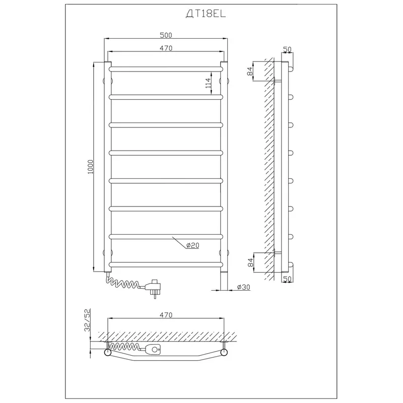 Рушникосушарка KOSSER Трапеція 1000х500/8 EL рег.