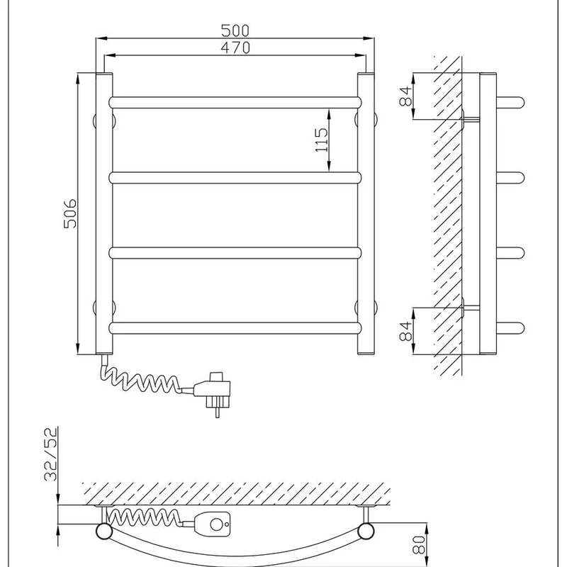 Рушникосушарка KOSSER Дуга 500х500/4 EL рег.