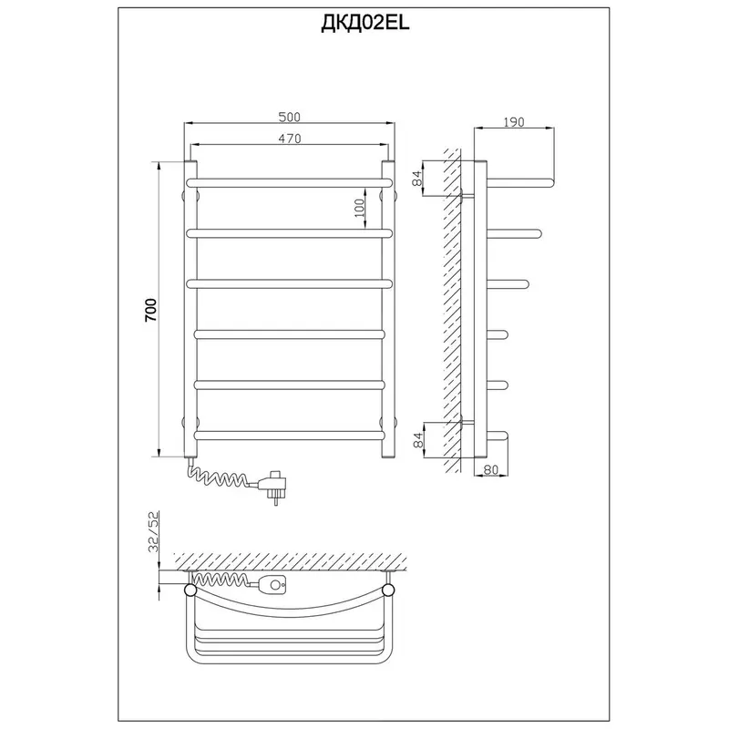 Рушникосушарка KOSSER Каскад Дуга 700х500/6 EL рег.