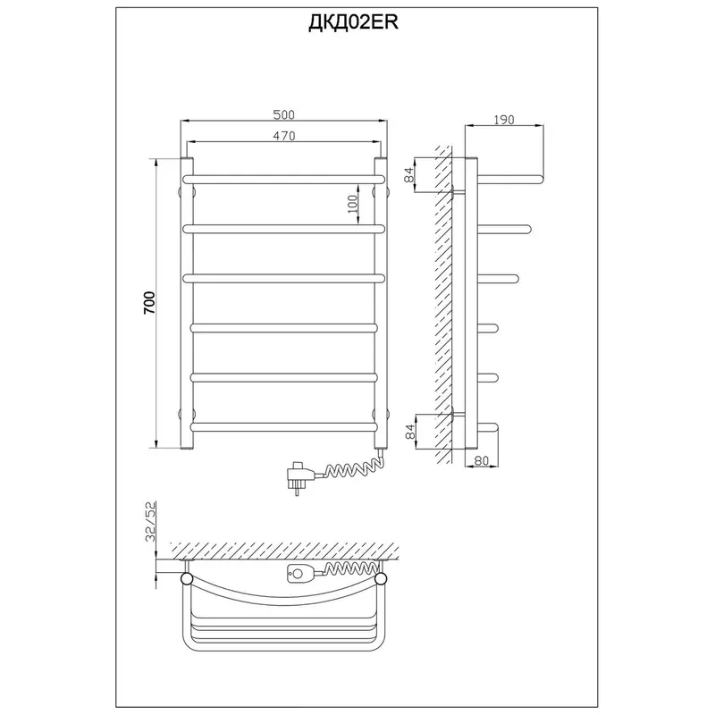 Рушникосушарка KOSSER Каскад Дуга 700х500/6 ER рег.