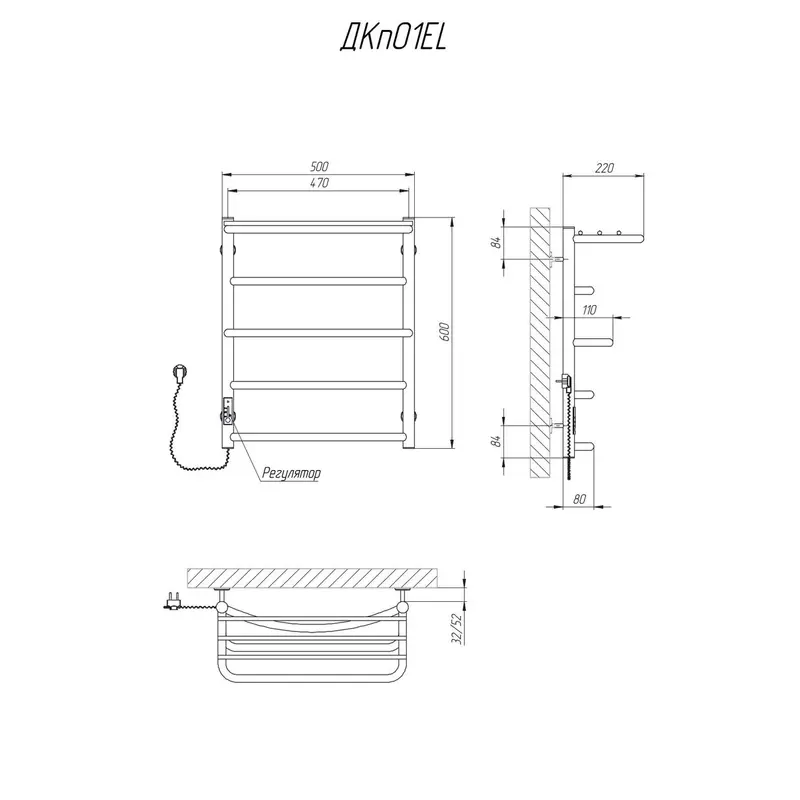 Рушникосушарка KOSSER Каскад із полицею 600х500/5 ER рег. тайм.