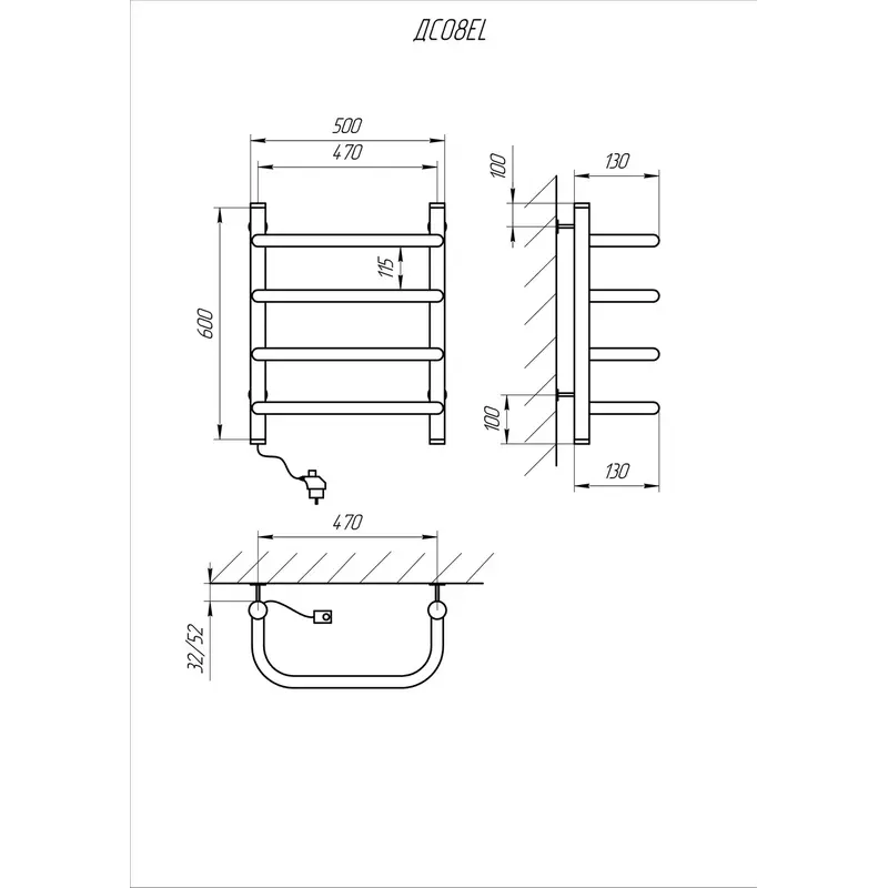 Рушникосушарка KOSSER Скоба 600х500/4 ЕL рег.