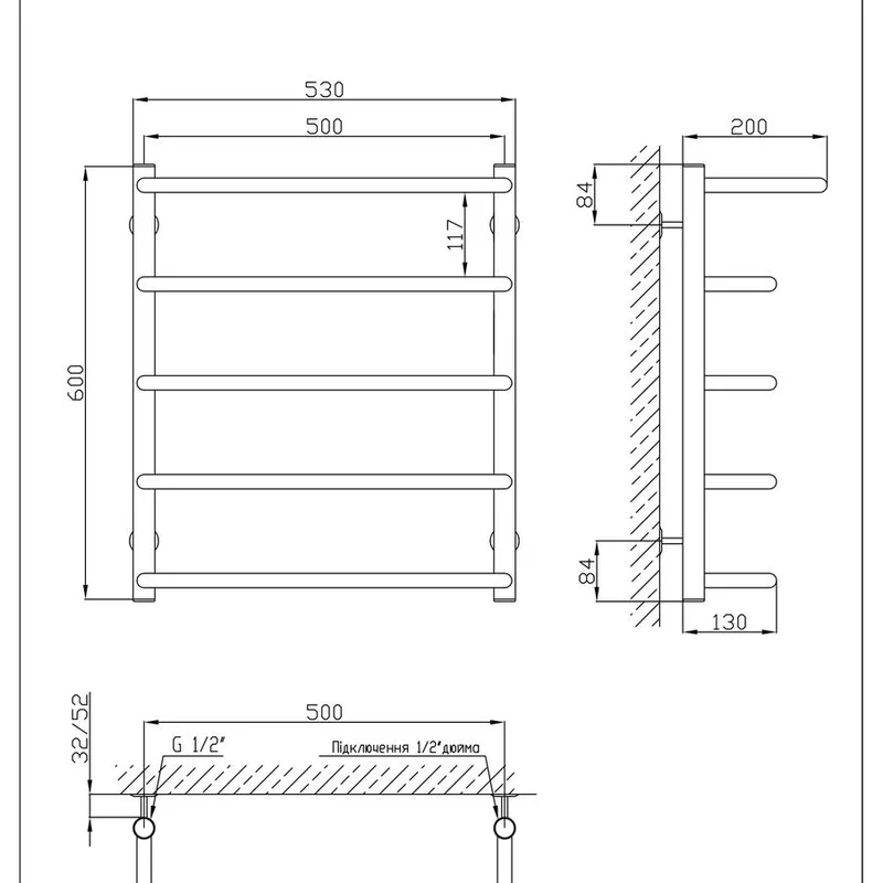 Рушникосушарка KOSSER Скоба з полицею 600х530/5