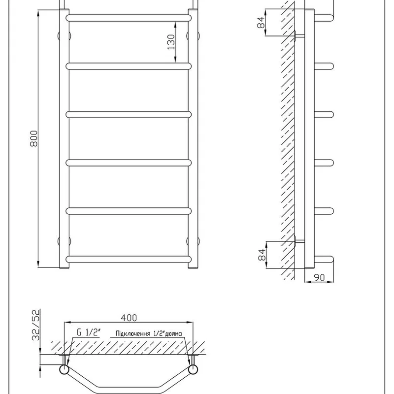 Рушникосушарка KOSSER Трапеція 800х430/6