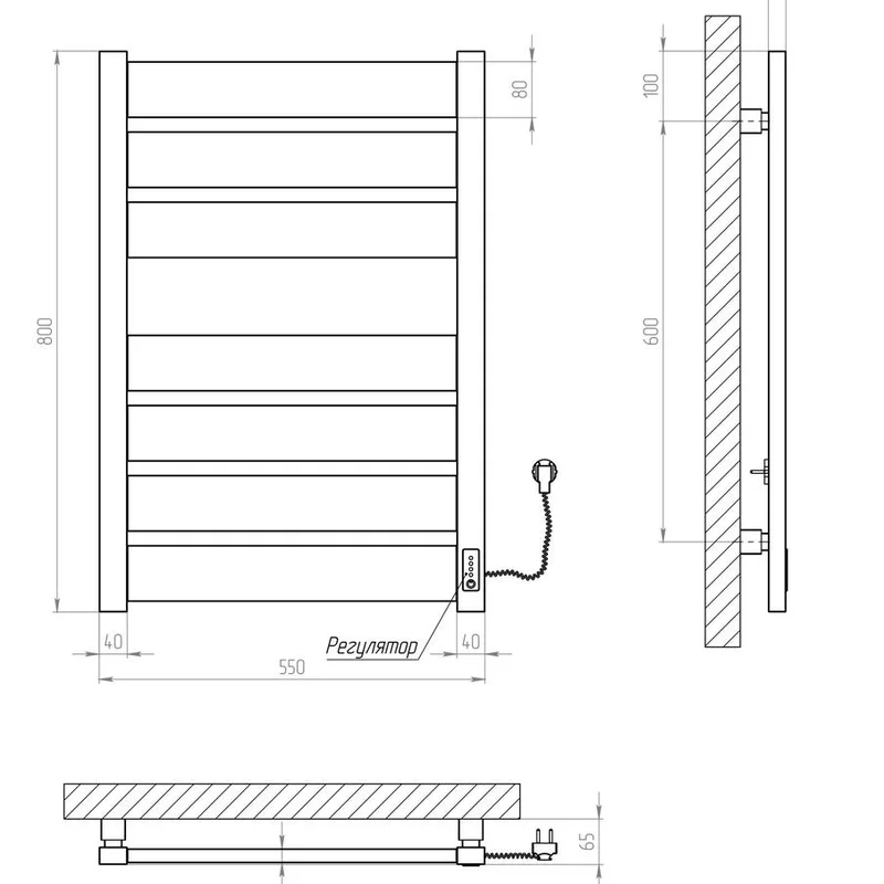 Рушникосушарка KOSSER Волз 800х500 ER тайм. чорний