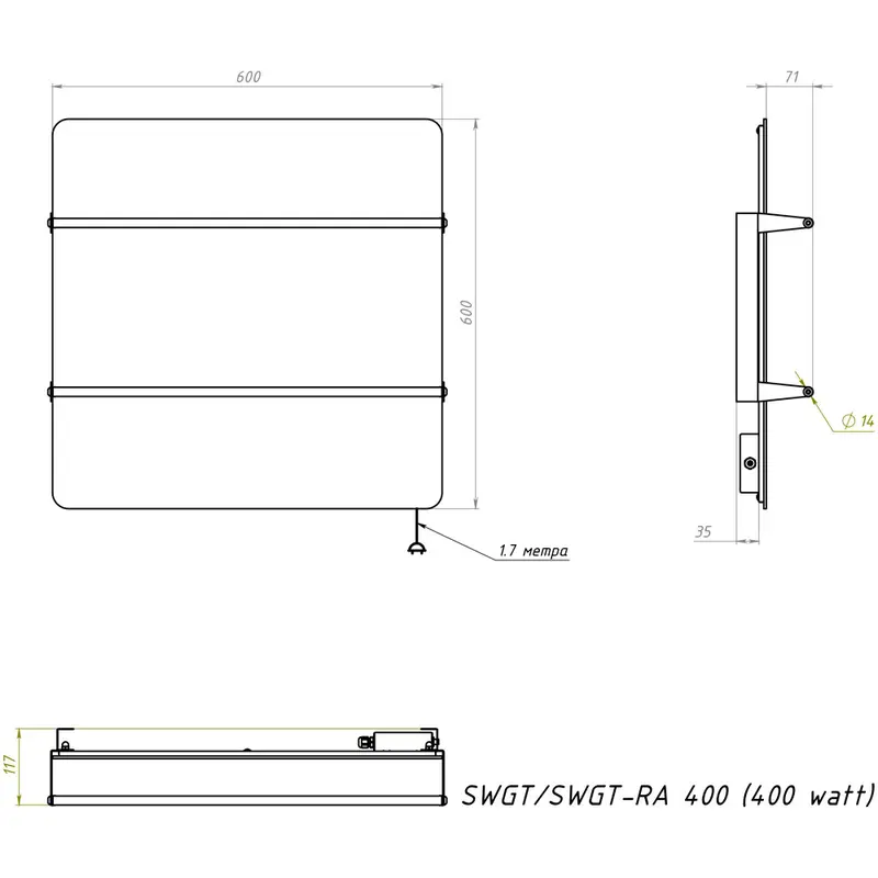 Рушникосушарка скляна з регулятором SunWay SWGT-RA 400, 600х600х15 мм, біла