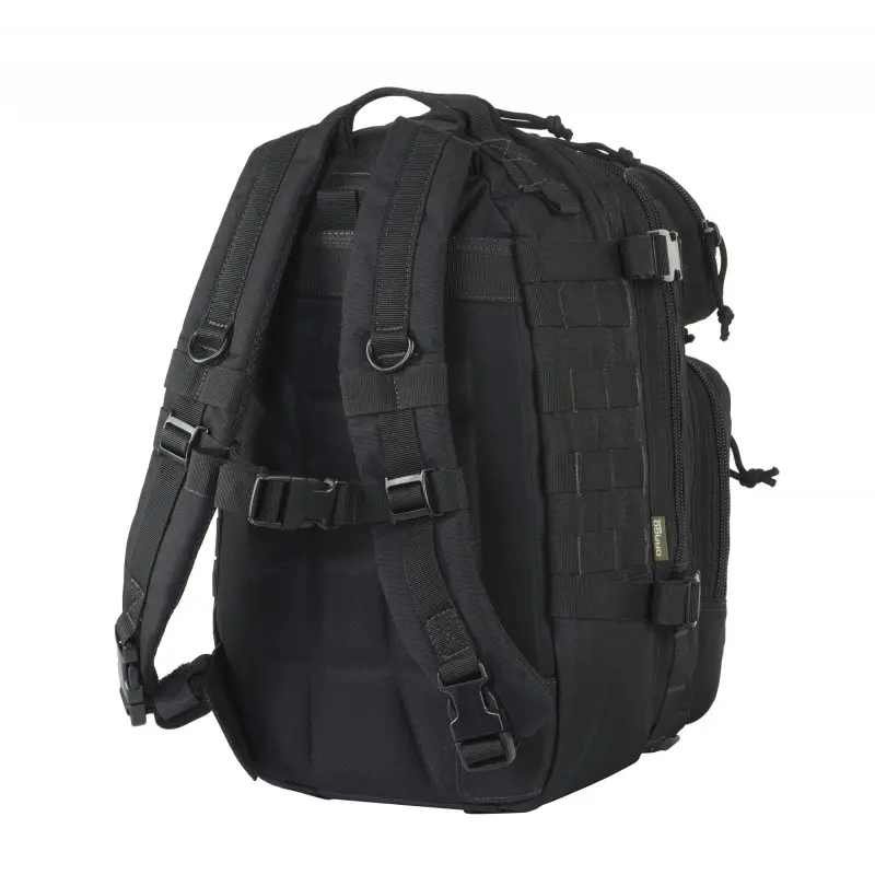 Виготовлений із якісного поліестеру, що забезпечить захист від механічних пошкоджень. Спереду та з боків рюкзак оснащений системою MOLLE, що дозволить за необхідності збільшити його обєм додатковими підсумками.