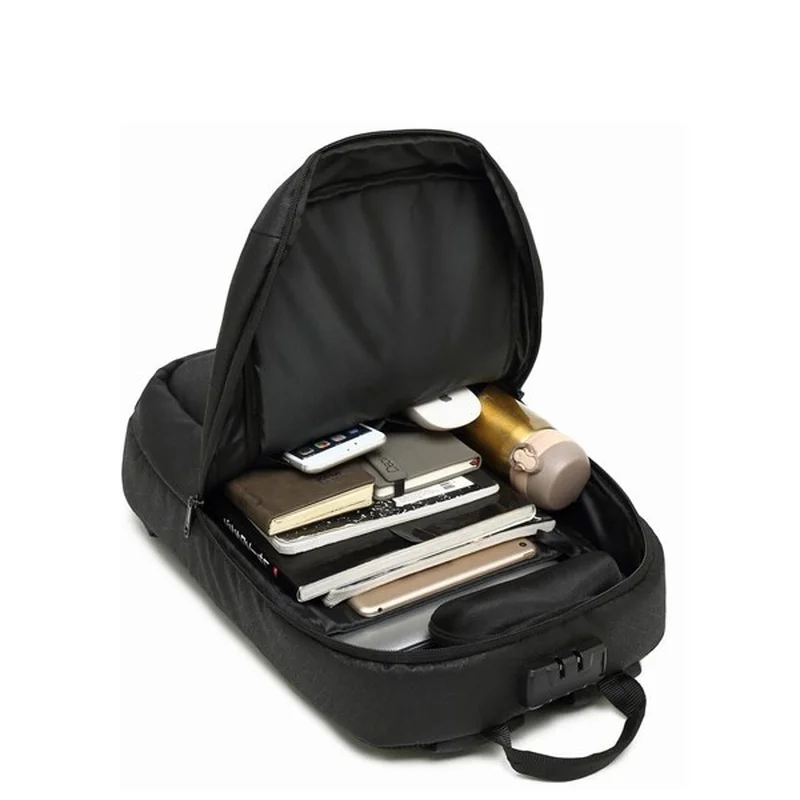Міський рюкзак виготовлений з поліестеру, підходить для ноутбука з діагоналлю екрана 15.6 ".Особливості:Кодовий замокКарман для планшетаUSB інтерфейсПотайна кишеня