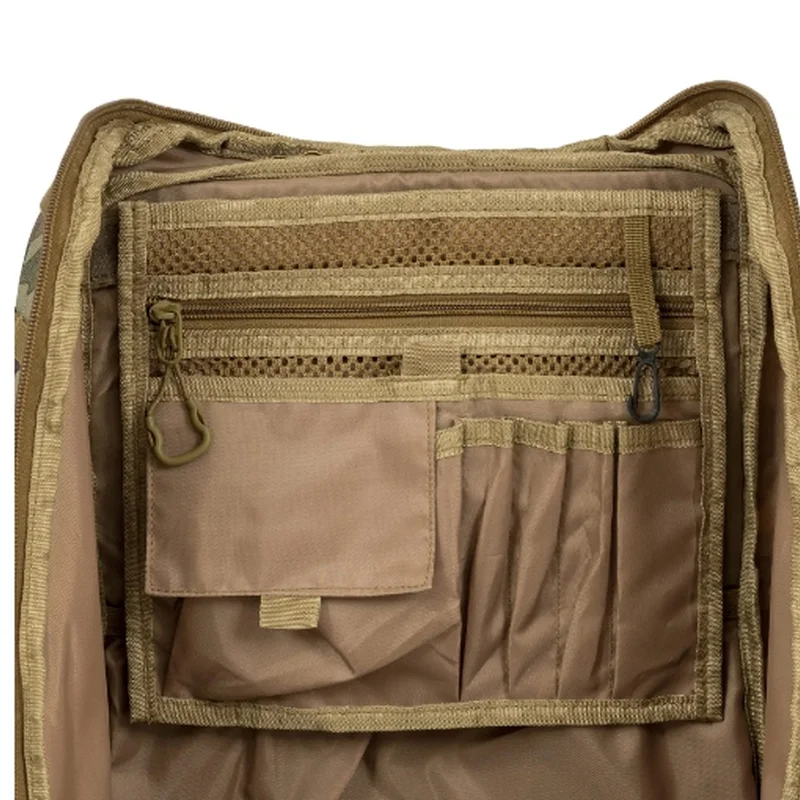 Highlander Eagle 3 Backpack 40L HMTC (TT194-HC) – вместительный и надежный рюкзак для длительных выходов. Модель изготовлена из прочного водостойкого полиэстера 600D XTP с полиуретановым покрытием, имеет систему креплений MOLLE, большое отделение на молниях для хранения снаряжения в полевых условиях, а также два эластичных боковых кармана. Мягкая спинка, компрессионные ремни и ручка для переноски делают этот рюкзак удобным для использования. Регулируемые лямки с мягкими подкладками и регулируемый поясной ремень распределяют нагрузку, чтобы обеспечить комфорт во время ежедневного ношения. Все это гарантирует, что этот рюкзак выдержит длительную эксплуатацию.