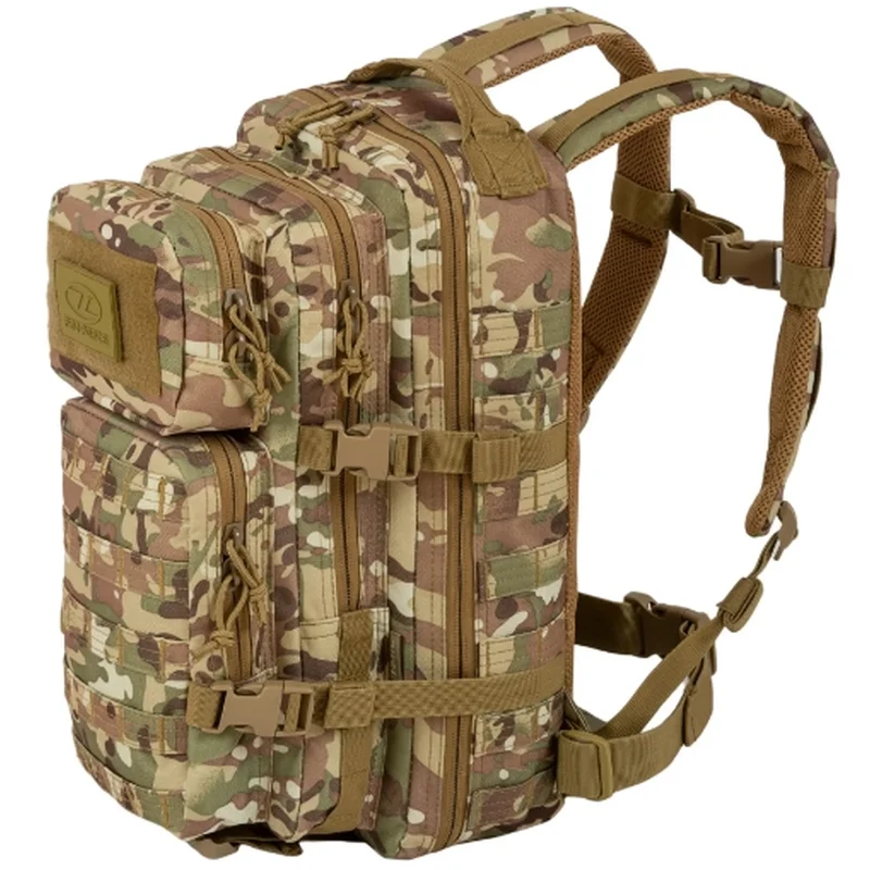 Highlander Recon Backpack 28L HMTC (TT167-HC) – компактный и легкий рюкзак для кратковременных выходов. Модель изготовлена из прочного водостойкого полиэстера 600D XTP, имеет систему креплений MOLLE и четыре отдельных отсека на молниях для хранения снаряжения в полевых условиях. Вентилируемая спинка Airmesh, компрессионные ремни и усиленная ручка делают этот рюкзак компактным и удобным для ношения. Регулируемые лямки с мягкими подкладками и регулируемый поясной ремень распределяют нагрузку, чтобы обеспечить комфорт во время ежедневного пользования. Все это гарантирует, что этот рюкзак выдержит длительную эксплуатацию.