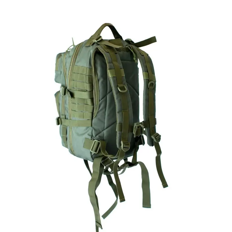 Тактичний рюкзак Tramp Squad об'єднання об'ємом 35 літрів на 4 відділення – універсальне рішення для тактичного використання так і для виїздів на полювання, рибалку або повсякденного носіння в великому місті. Кількість запасів, які поміщені у внутрішній простір, за стандартами, вистачає на 24 години. Робоча ємність основного відділу дорівнює 34 літрам, чого з лишком вистачає для перенесення різного спорядження і важливих деталей тактичної екіпіровки. Є спеціальні відділення для розміщення ідентифікаційних бейджів і документів (вбудоване в спинку глибоке потайної кишеньки для товстої папки з документами формату А4). Завдяки нашитим з зовнішньої сторони стропи і петель системи MOLLE рюкзак можна доповнити необхідним спорядженням.