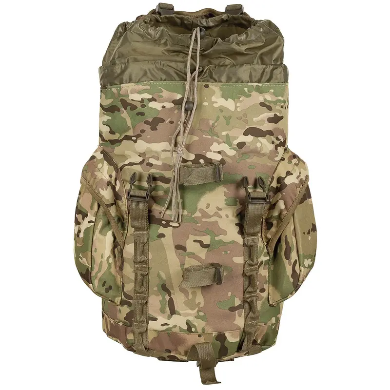 регулируемые мягкие плечевые лямки с пластиковыми D-образными кольцами регулируемый нагрудный и набедренный пояс устойчивая, мягкая спинка обивка из дышащего сетчатого материала 1 ручка для переноски на верхней крышке с застежкой-клипсой, эластичный шнурок со стопором и 1 карман в крышке на молнии и съемный чехол для рюкзака сзади основное отделение с двойным шнурком 2 прикрепленных боковых кармана с клапаном и двусторонней молнией спереди с 3 ремнями для крепления Различные петли спереди и снизу Объем: около 25 л Размеры: около 34 x 56 x 22 см (Ш x В x Г) Вес: около 1,45 кг