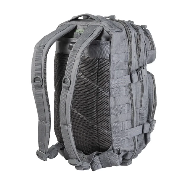 Данная модель тактического штурмового рюкзака ASSAULT "S" (20 литров) состоит из двух больших отделений с застежкой-молнией с различными сетчатыми внутренними карманами, двух маленьких передних карманов, а также встроенного кармана на липучке для гидросистемы. Все отделения закрываются на крепкие двухсторонние молнии. Эргономичные плечевые лямки шириной около 5 см, регулируются по длине. Кроме того, рюкзак оснащен плотной демпферной спинкой с вентиляционной системой и регулируемым поясным ремнем на застежке Fastex. Рюкзак имеет боковую регулировку по объему (в зависимости от загрузки рюкзака), а также стропы MOLLE на внешней стороне для навешивания дополнительных подсумков и D-образные кольца на плечевых лямках. Данная модель рюкзака имеет оптимальный объем для городских условий, легких прогулок на природе, рыбалки и охоты.