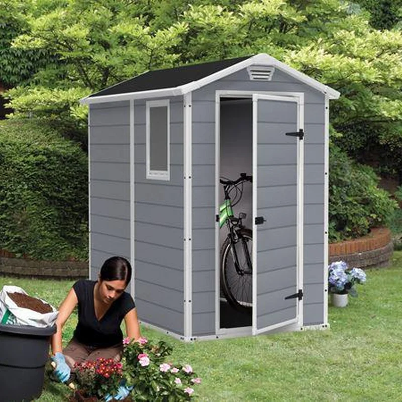 Пластиковий сарай KETER Manor 4х6Ѕ - стильний компактний сарай з пластику від компанії KETER може бути використаний в різних цілях - від зберігання інвентарю до побутівки або душовою.