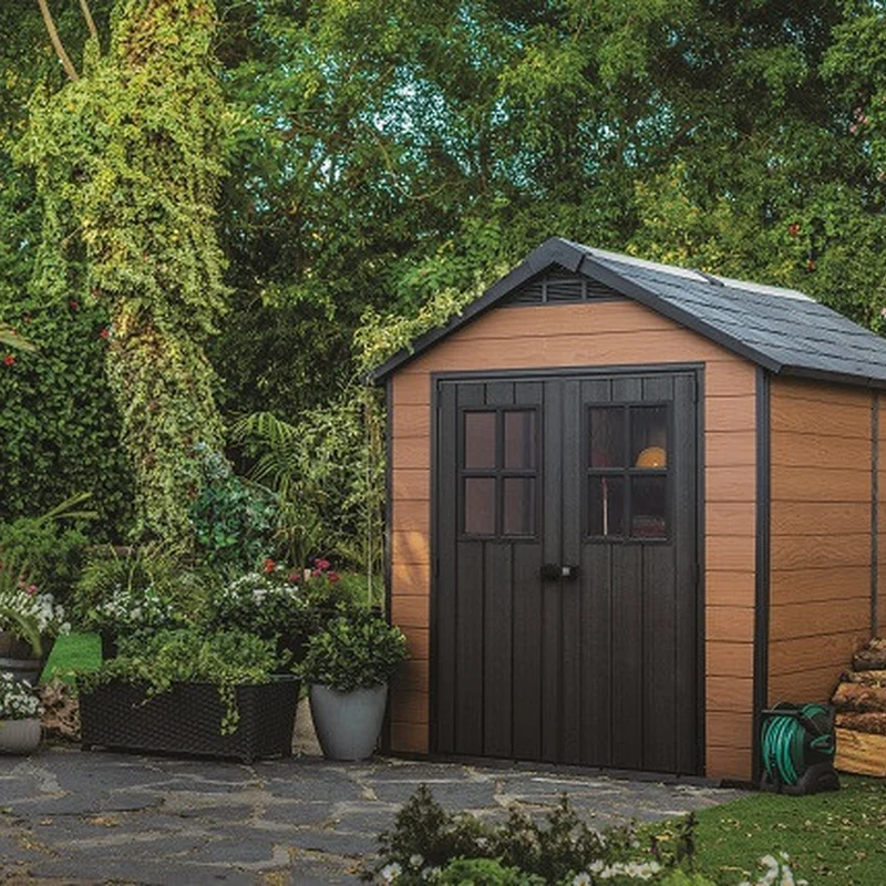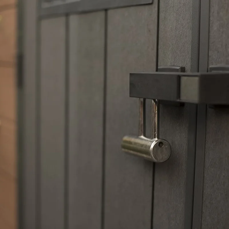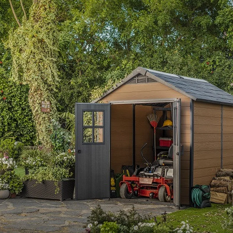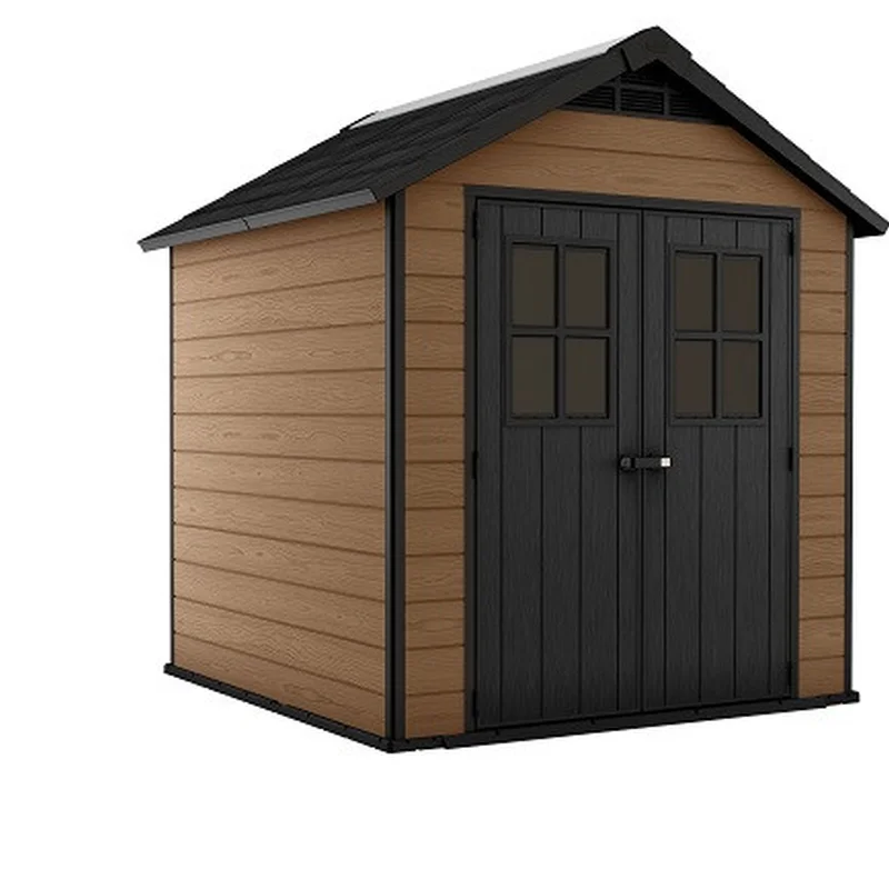 Сарай (Садовий будиночок) Newton 759 - сарай преміум-класу, що забезпечує довговічність і безпеку, необхідні для захисту інструментів, меблів та обладнання. Newton 759 являє собою справжній прорив у дизайні сараю. Використовуючи панелі, виготовлені з інноваційного деревинно-пластикового композиту (WPC), стіни сараю мають естетичний вигляд і відчуття натурального дерева, забезпечуючи при цьому всі переваги смоли. Повністю не потребує обслуговування, ніколи не іржавіє, не гниє і не відшаровується. Завдяки укріпленої конструкції Newton 759 витримає навіть самий сильний дощ, вітер і сніг. Великі вікна, прозора вставка у всю довжину даху і вбудована вентиляція забезпечують світло і приплив свіжого повітря. Надміцні панелі підлоги витримують велику вагу.