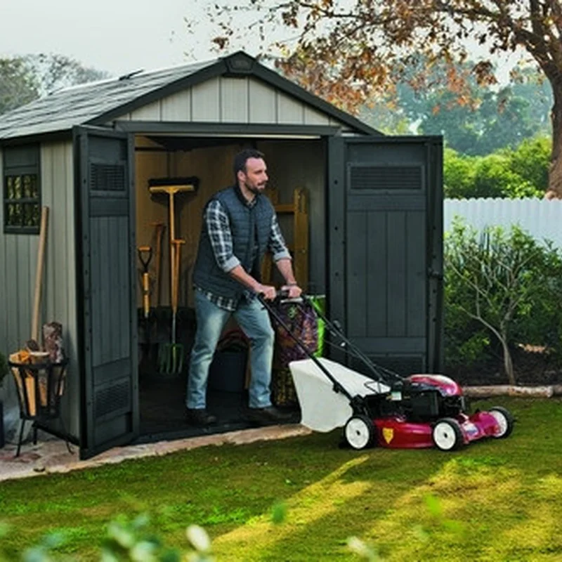 Продумана, укріплена сталевими елементами конструкція сараю для інструментів OAKLAND 759, припаде до смаку тим, хто віддає перевагу поєднанню функціональності та вишуканому стилю. Оптимальна місткість, двопільні двері, товсті подвійні стінові панелі та надійний дах - це дуже важливі та практичні переваги виробу. Будиночок ідеально впишеться в садовий простір, а додатковою перевагою є можливість зміни його кольору шляхом фарбування панелей у будь-який колір. Всередині без проблем помістяться великі садові інструменти, такі як автоматичні газонокосарки, набір для гриля, садові меблі і ряд інших городньо-садових аксесуарів.