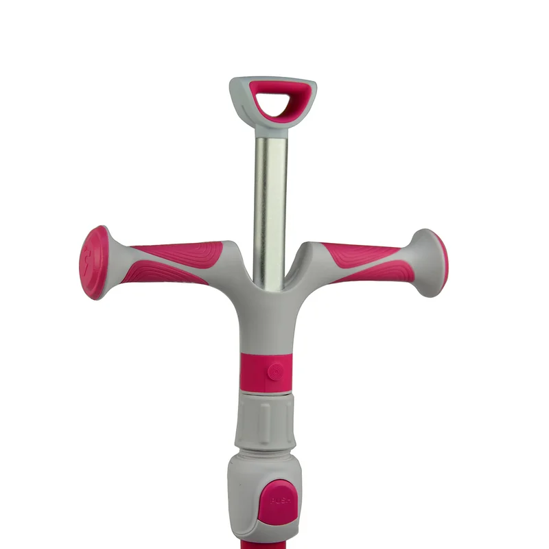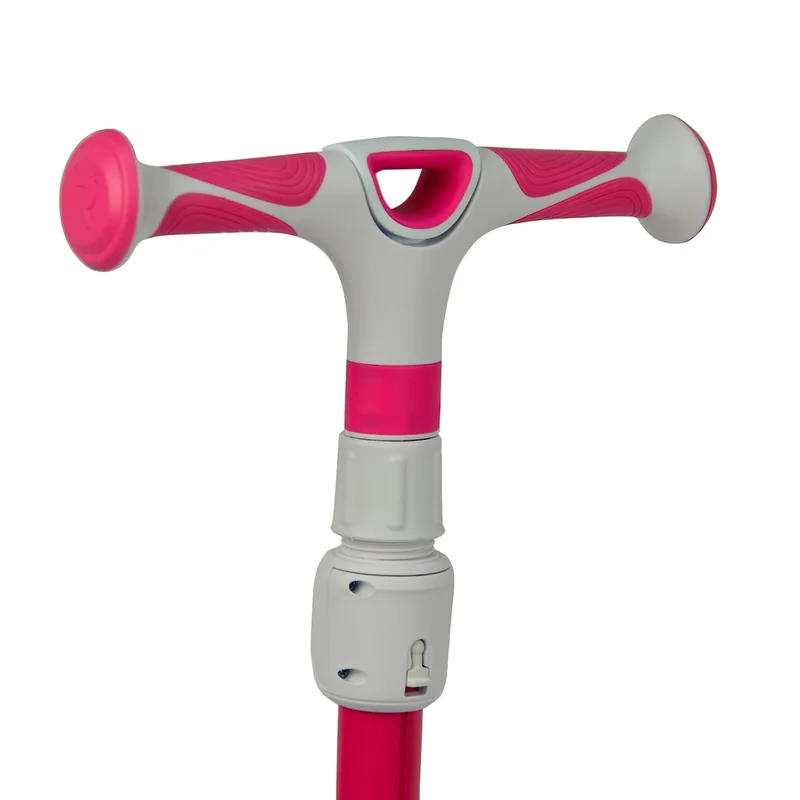 - Самокат легко складывается, автоматически фиксируется, удобно перевозится в сложенном виде с помощью запатентованной выдвижной ручки.