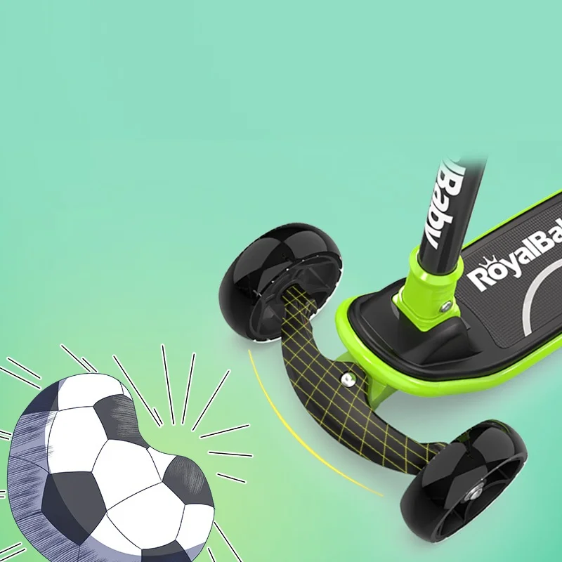 - Широкие передние колеса из полиуретана шириной 40 мм для лучшего наката и сглаживания неровностей, подсвечиваются во время движения (батарейки не требуются).