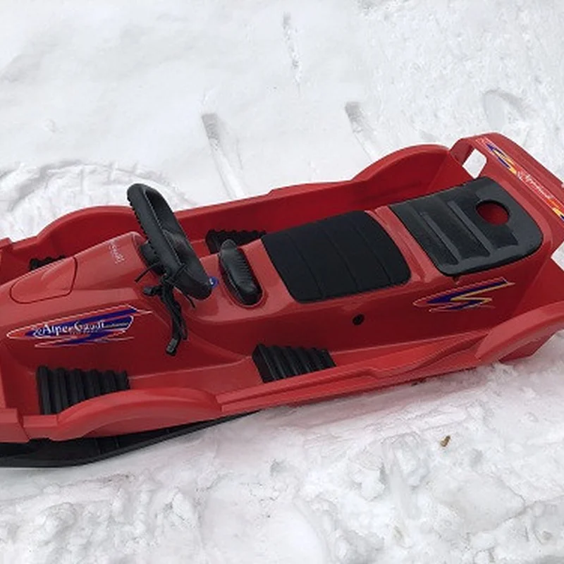 Санки оснащені гальмом, і мотузкою з ручкою. Що забезпечить не тільки швидкість, але і безпеку для відвідувачів. Навіть дорослі, з задоволенням би помчали на таких санях.