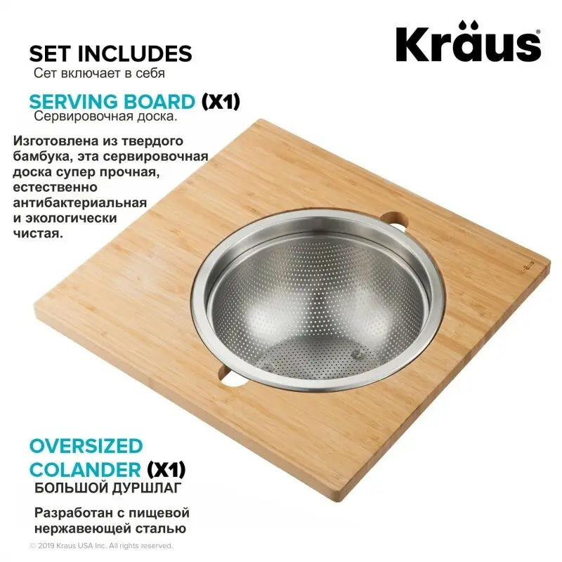 Перетворіть вашу мийку KRAUS Workstation в оптимальне місце для приготування і презентацій страв за допомогою індивідуально підібраної сервірувальної дошки, яка ковзає по інтегрованому бортику.