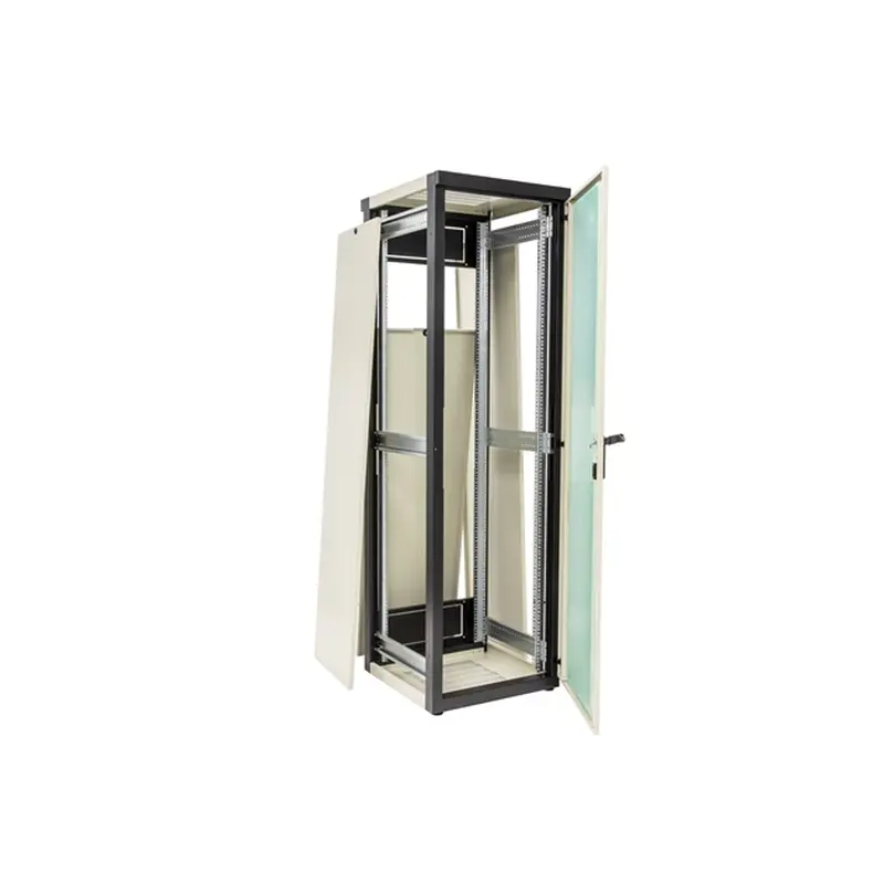 Введення кабелю згори, знизу, ззаду. Є можливість встановити до 4 120 мм вентиляторів у блоці вентиляції. Бічні стінки - знімні. Забезпечується заземлення усіх елементів конструкції шафи. Передні двері скляні.