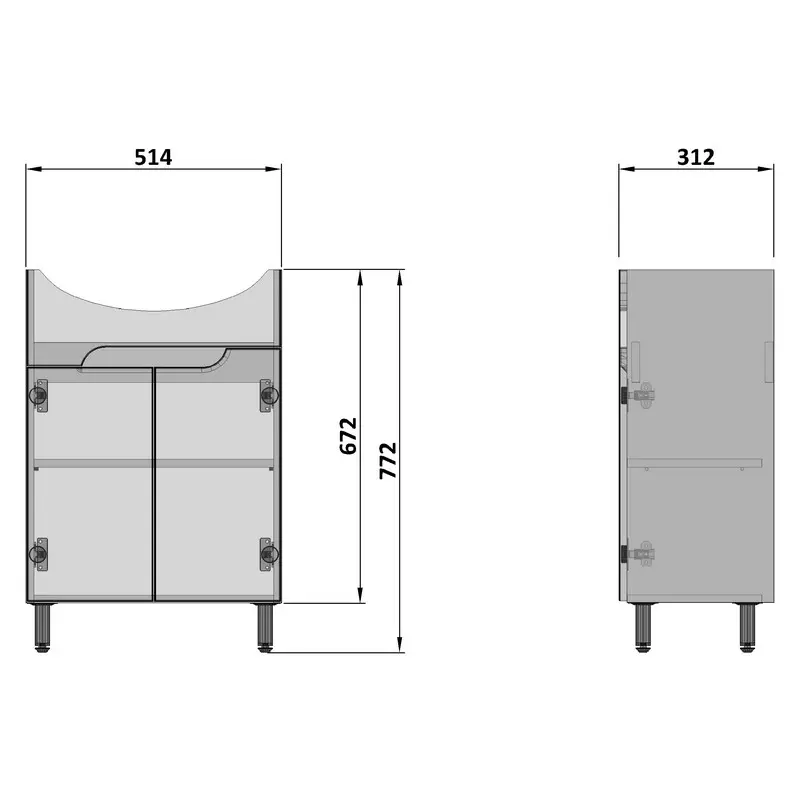 Шафка PRIME д/раковини CERSANIA 55, на ніжках, зібрана (UA) Nautilus
