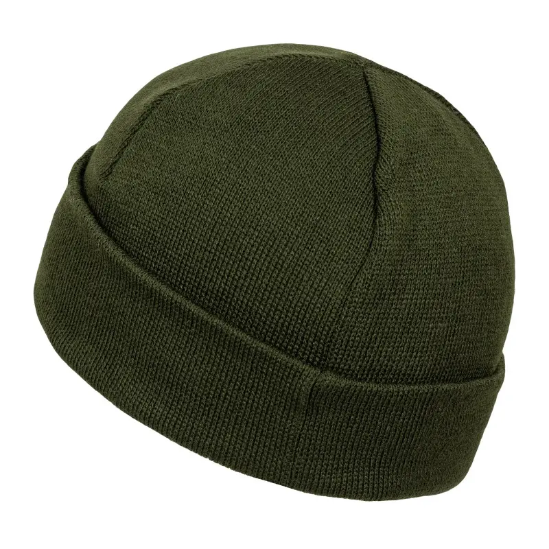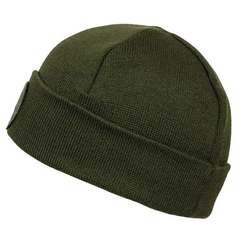 Шапка в'язана на флісі з відворотом і кокардою НГУ Темна олива