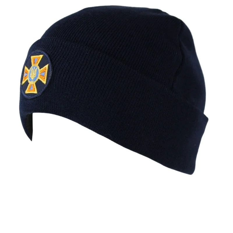 Шапка вязаная с флисовой подкладкой ДСНС темно синяя Pancer