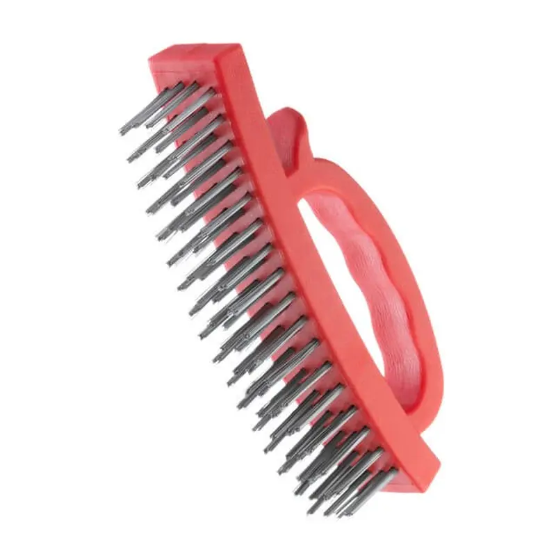 Щітка виготовлена зі сталевого високоякісного дроту, розташованого в декілька рядів. Ручка виготовлена з пластику, її зручно тримати та керувати процесом зачищання. Упор під великий палець у конструкції забезпечує зручність та кращий контроль над робочим процесом.