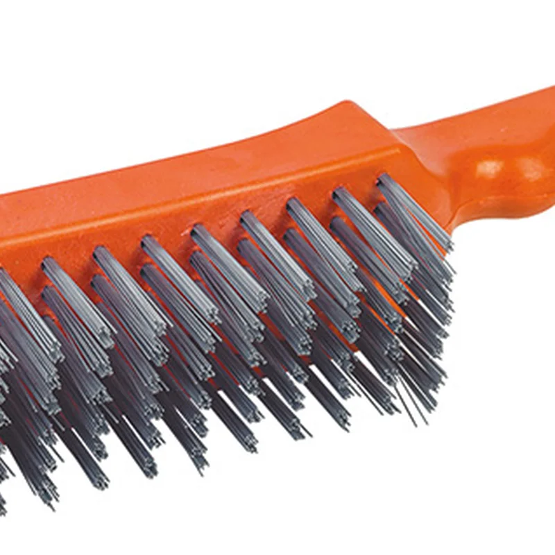 Щітка виконана з дроту та пластмаси, має ергономічне руків’я. Використо- вується для очищення металевих поверхонь від фарби, іржі, окалини. Зручна в роботі, не схильна до корозії
