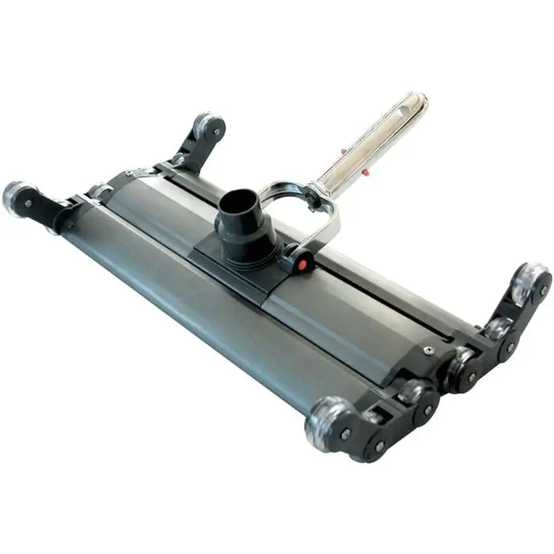 Щітка для ручного пилососу Kokido Premium K394CBX/PRE алюмінієва 18" підключається до пилососа. Вертлюг виключає можливість заплутування шланга. Ексклюзивний трьохсекційний шарнірно-з'єднаний корпус дозволяє пилососити біля основи стінок басейну. Щітка обладнана протиковзкими коліщатками з конструкцією з нержавіючої сталі. Хороший контакт з поверхнею. Посилена конструкція гарантує тривалу експлуатацію. Для зручності користування кріпиться до телескопічної штанги та вакуумному шлангу. Ручка і шланг в комплект не входять, купуються окремо.