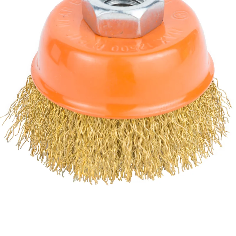 Чашоподібні щітки рекомендують для обробки великих ділянок, зварних швів та листового металу.