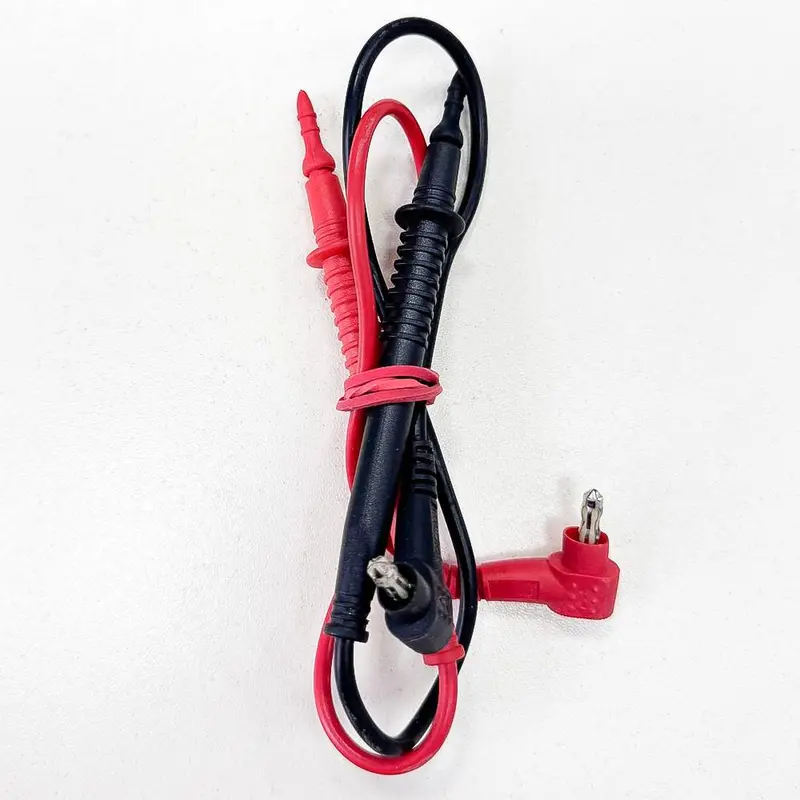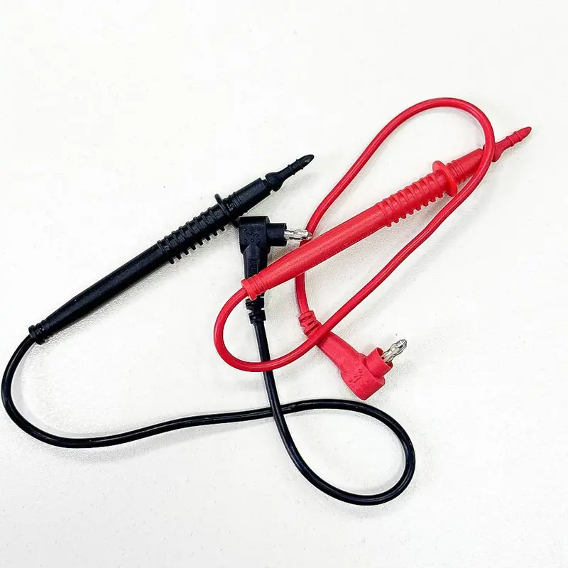 Один кінець – металевий щуп, інший – кутовий штекер. Червоний - "+", чорний - "?". Зручний для частого використання та роботи з високими струмами.