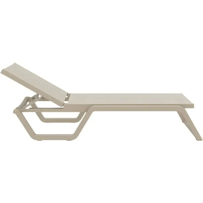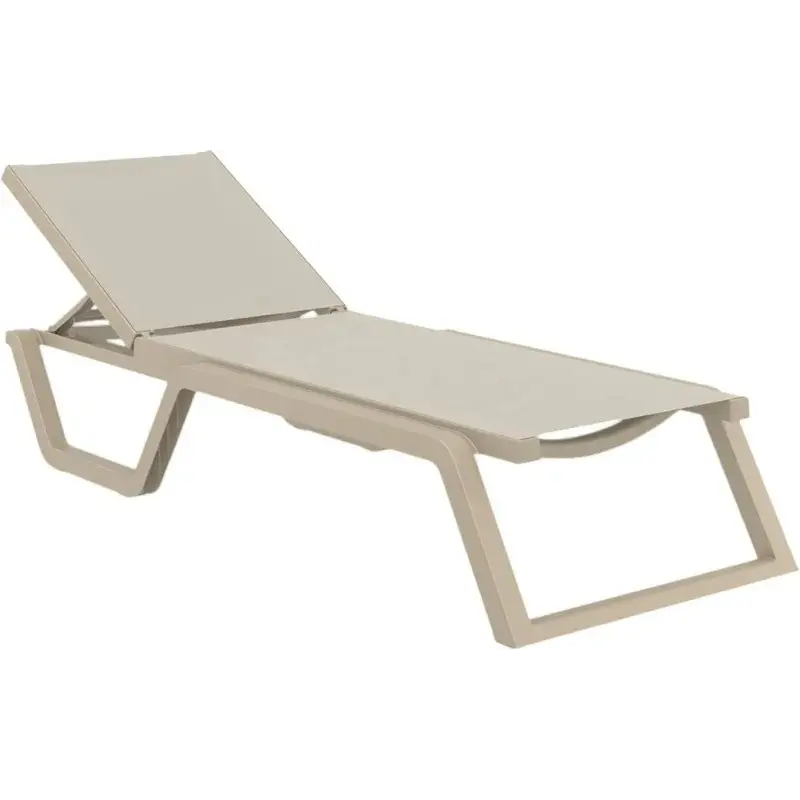 Каркас виготовлений з поліпропілену, армованого скловолокном. Такий матеріал не боїться ударів, вологи, хімії і сонця. Шезлонг зберігає зовнішній вигляд навіть після активного сезону. Для зручного переміщення є два вбудованих коліщатка. Шезлонги легко штабелюються, економлячи місце при зберіганні.