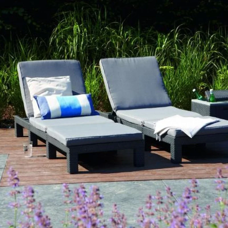 Daytona - елегантний і зручний пляжний шезлонг. Оригінальна фактура поверхні, яка нагадує ротанг, є визначальною рисою даної моделі. Шезлонг має регульовану спинку.