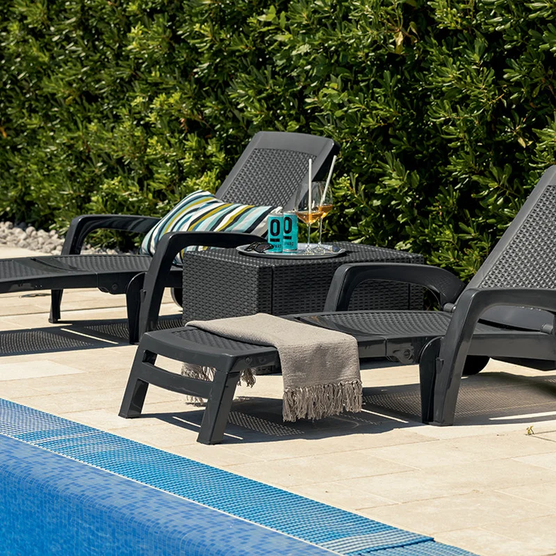 Міцний та стійкий Шезлонг пластиковий BICA Miami у стильному кольорі графіт — це не тільки практичний предмет садової архітектури чи елемент облаштування простору навколо басейну та на пляжі, а й беззаперечна прикраса для стилізації цих та інших зон відпочинку. Виріб ідеальний для використання у котеджах, на дачі та заміських будинках.