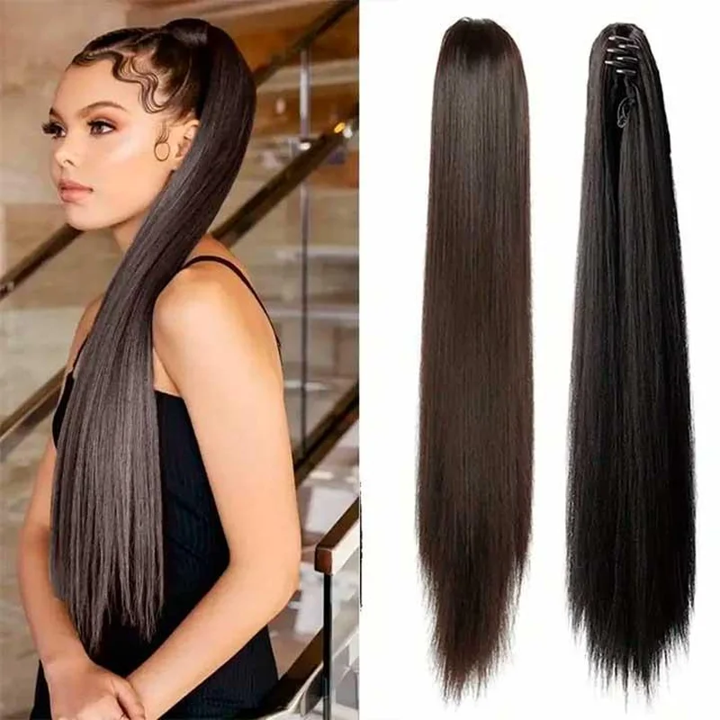 Шиньйон накладний хвіст на шпильці Didaka пряме волосся — 50 см "Брюнетка"