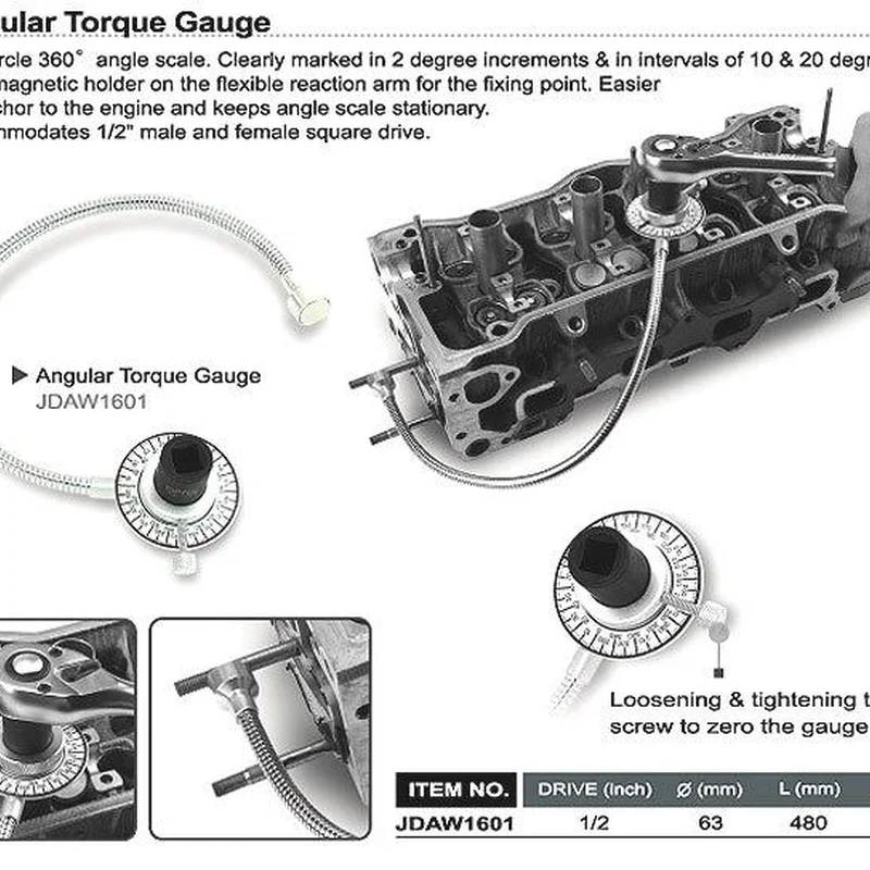 Шкала доворотная з магнітним кріпленням TOPTUL JDAW1601 застосовується для вимірювання кута завертання кріпильних деталей.Квадрат 1/2".Діаметр - 63 ммДовжина - 480 мм