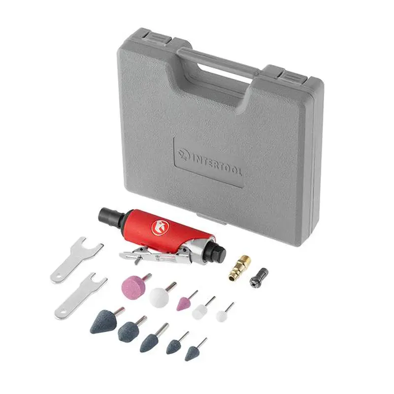 Шліфмашина пневматична у валізі 1/4" міні + набір шліфувальних каменів 10 од. INTERTOOL PT-1003