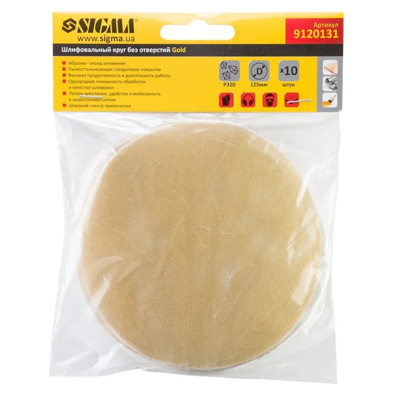 Шліфувальний круг без отворів Ø125мм Gold P320 (10шт) SIGMA (9120131)